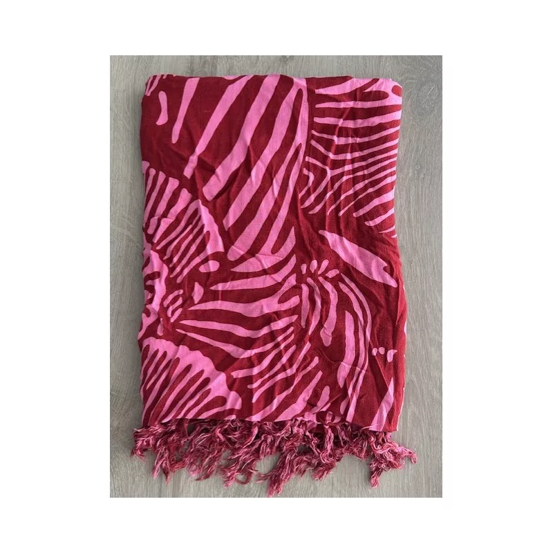 Rose foncé. Jamais porté. Environ 1,50 mètre de long pour 1 mètre de large. 100% Viscose